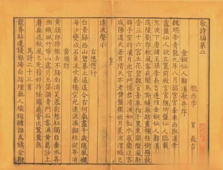 李集世所通行者为《昌谷集》、《李长吉集》,《歌诗编》行世者罕。《歌诗编》宋代曾有刻本,今仅见清初钱氏述古堂影宋抄本。该抄本每半叶十行,行十八字,与此蒙古宪宗六年(1256)赵衍刻本行款不同,知此本当属重刻本,而非翻宋本。