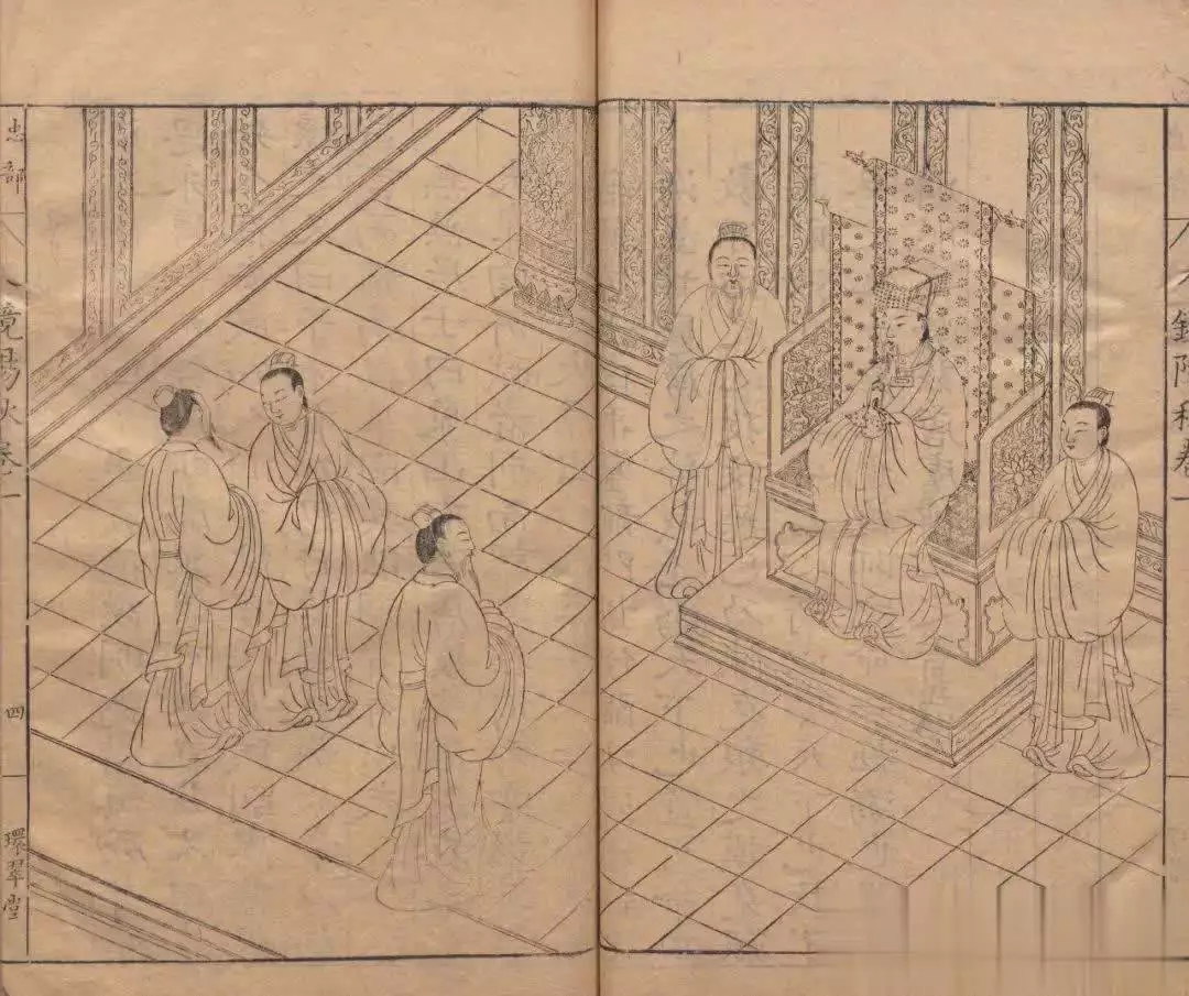 在诸唐中间,富春、世德两家是较早的老辈。富春堂诸种的版式与插图都是异常古朴的,是元末以来通俗读物的直接继承者。到了唐振吾就开始出现改革的迹象,插图风格逐渐趋于工丽。这是市场竞争的结果。徽派版画的发展给出版业带来了新的刺激,同时也是一种威胁,不改进就不能生存下去。不过唐家似乎并未直接聘用徽派的雕工,而是走着自己的路。这就是后来形成的金陵派版画风格。文林阁和少后的继志斋(刊书于万历三十六年前后)的作品可以作为这种风格的代表。