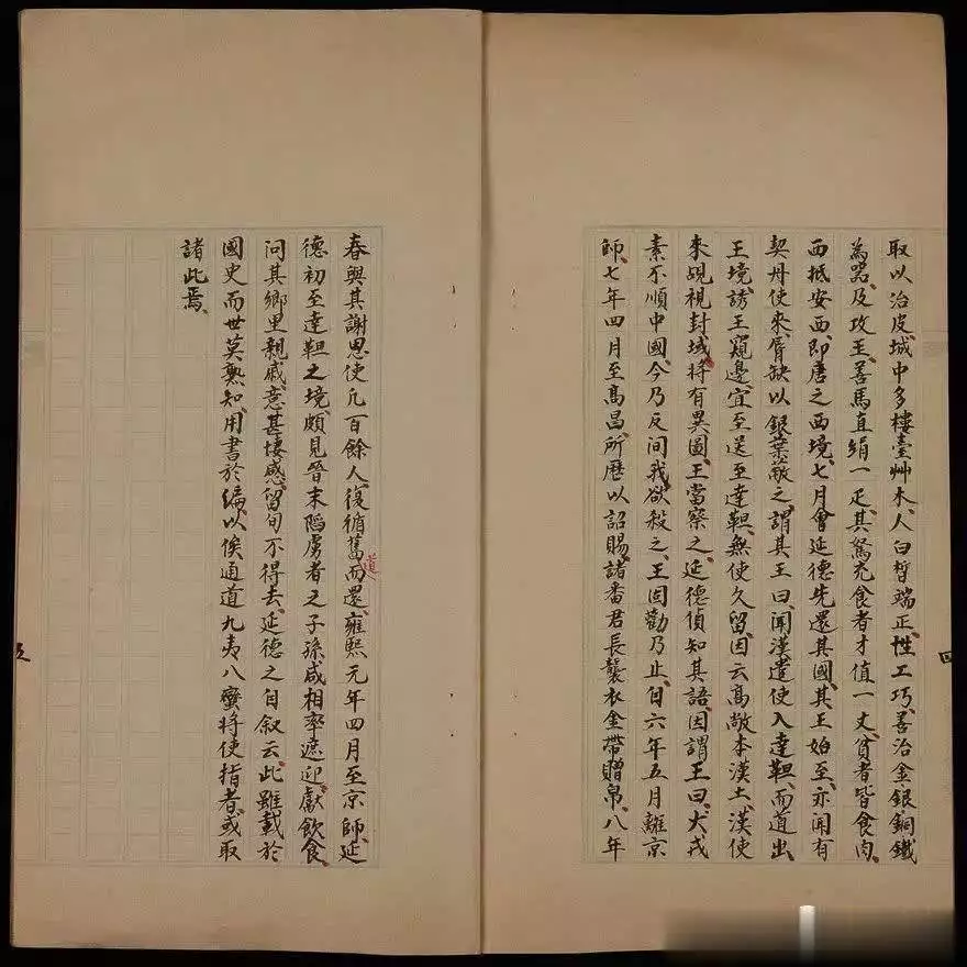 其研究重心转向西北史地之学,是从1925年入清华国学研究院起,辑有《古行记校录八种》,《使高昌记校注》即其中之一。此书辑自《宋史·高昌传》,并据宋王明清《挥麈前录》所引校勘。国家图书馆所藏稿本保留了王国维钩沉史料、辨章学术的原貌,字里行间的丹黄批注、圈点勾稽,生动再现了王国维的治学形象。(辜吉)