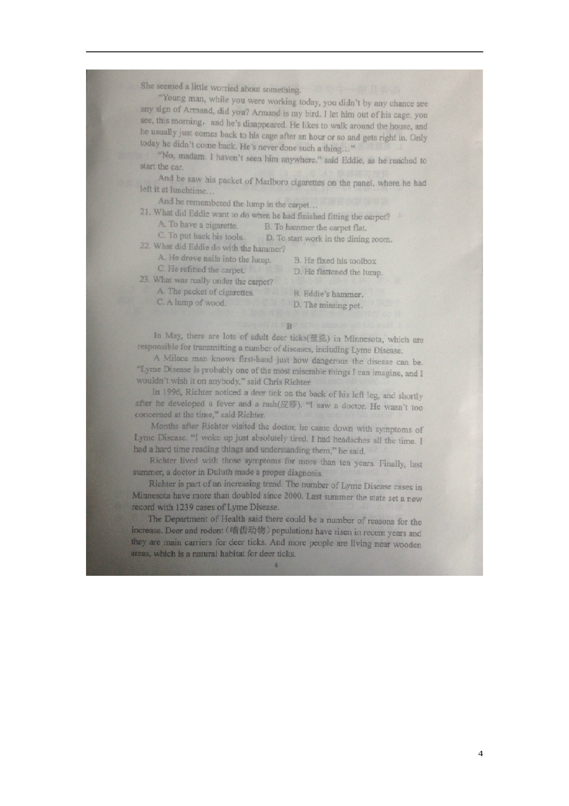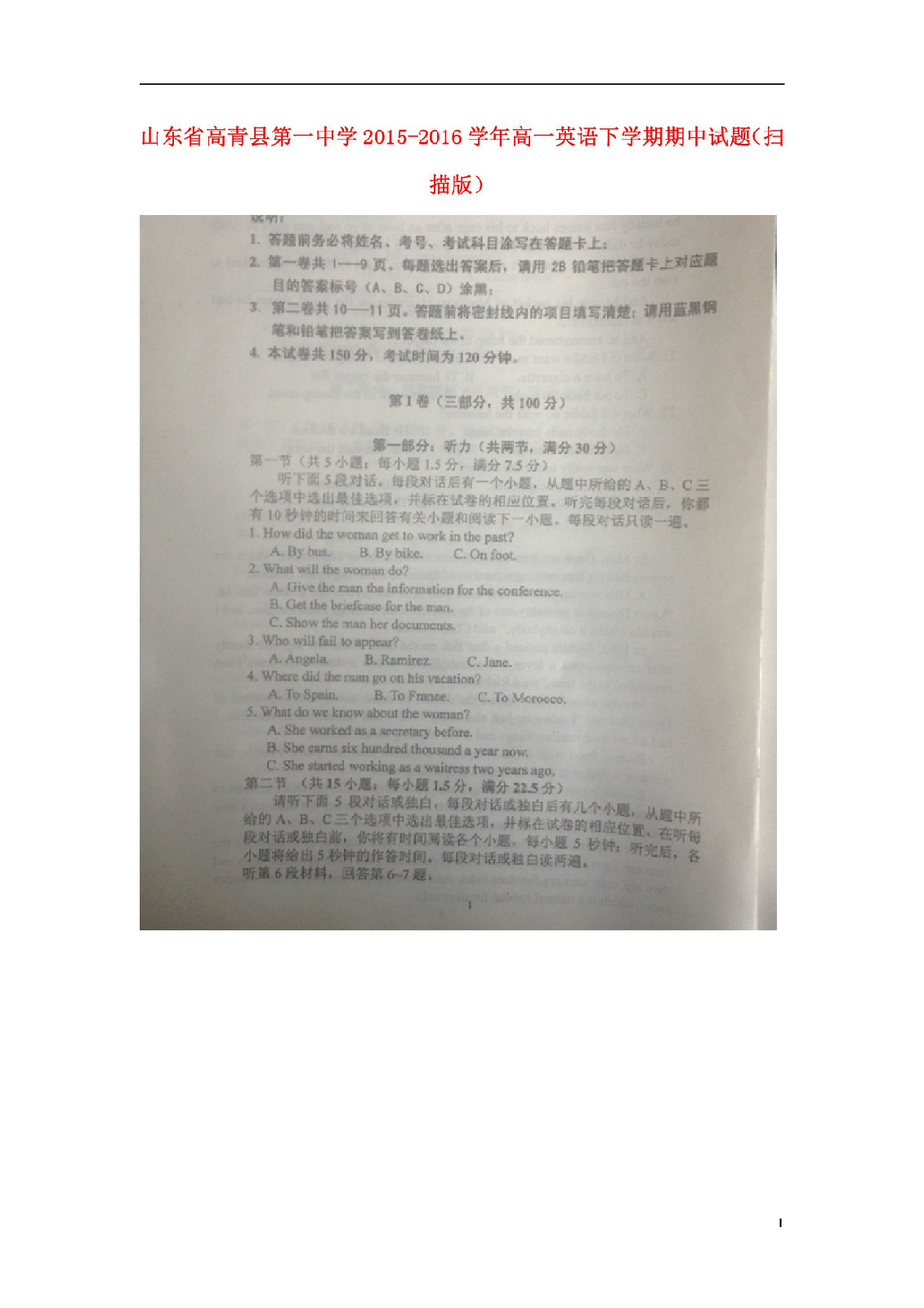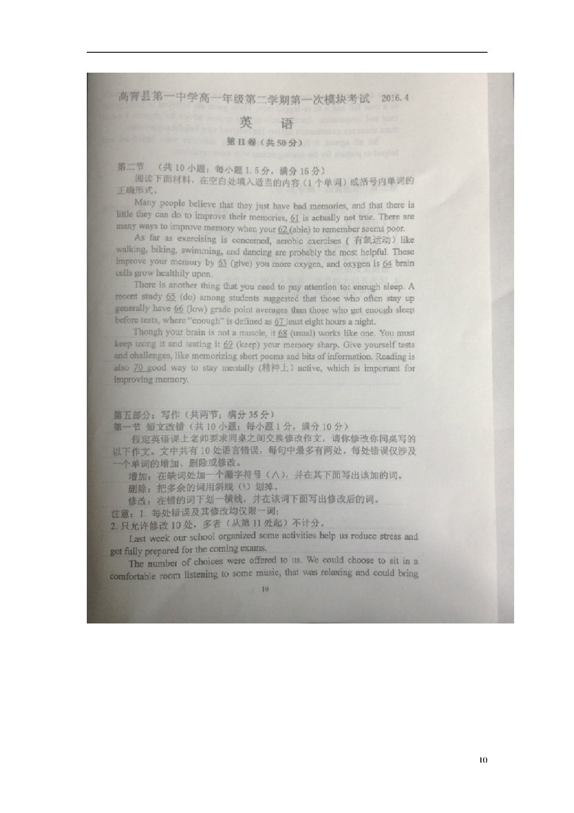 高青县第一中学2015-2016学年高一英语下学期期中试题