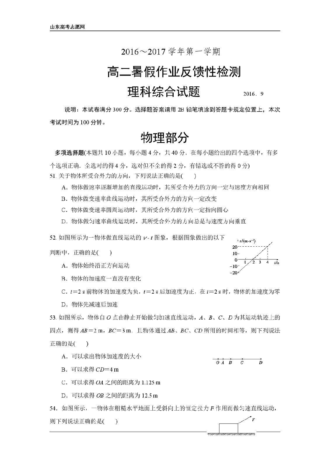 省实验中学2016-2017学年高二暑期作业反馈性检测(开学