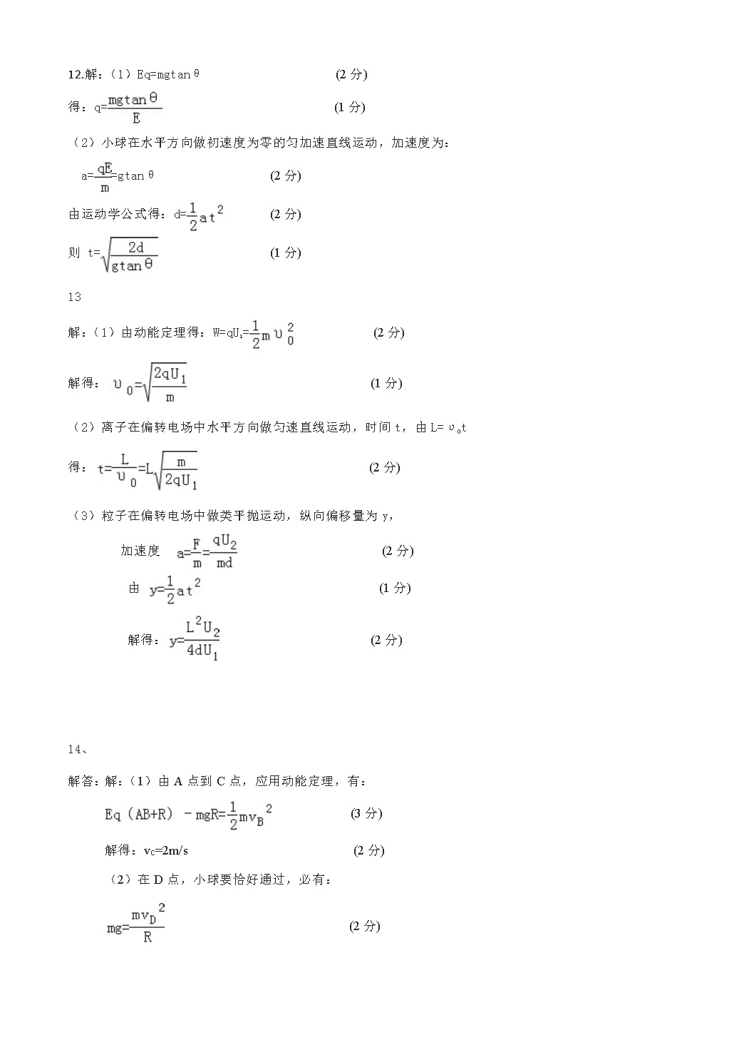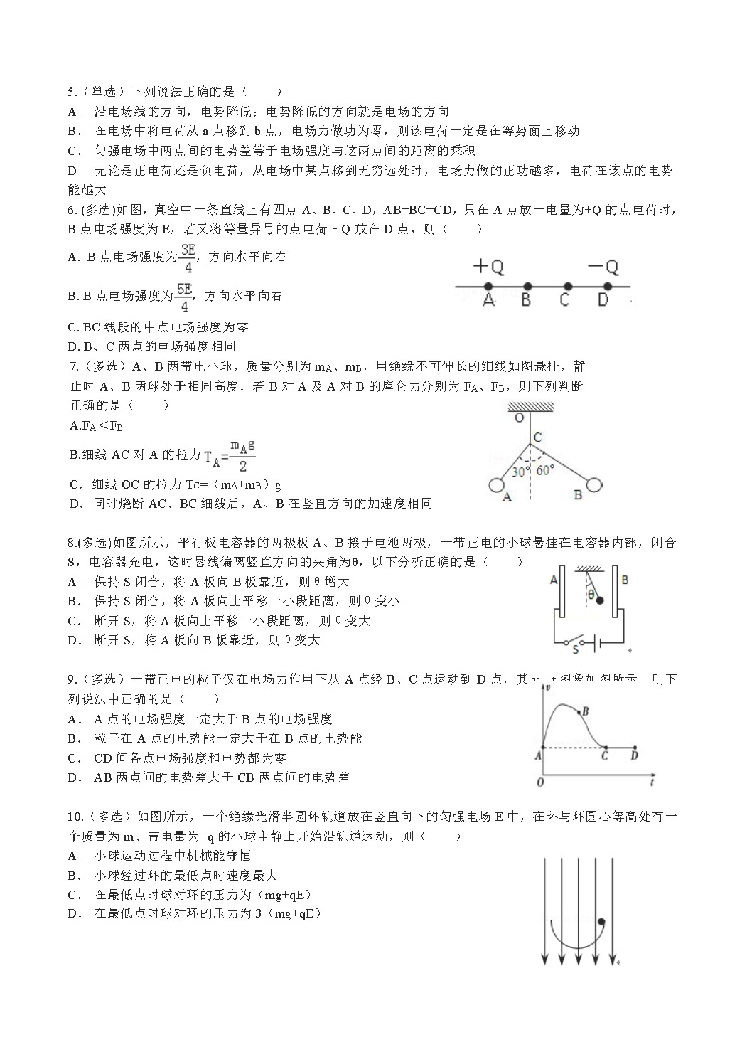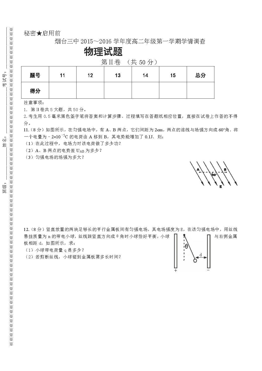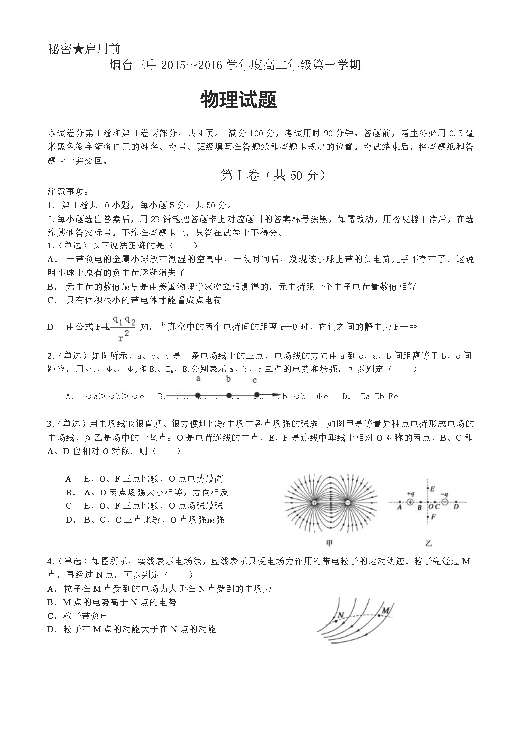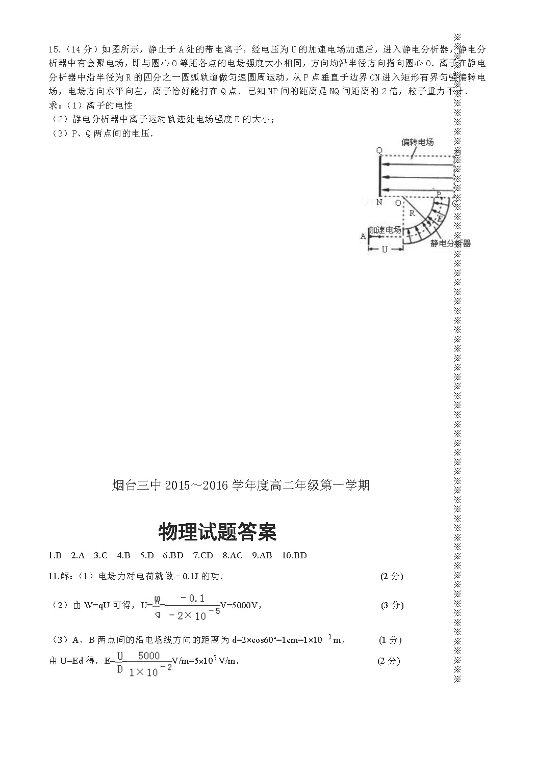 烟台三中2015~2016 学年度高二年级第一学期物理试题