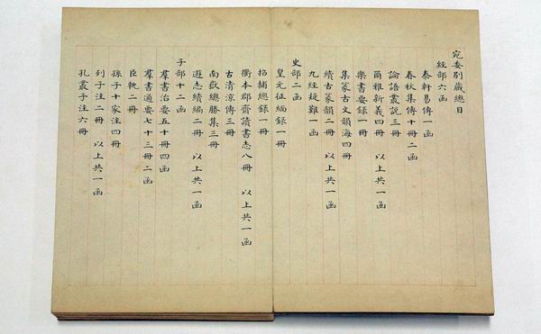 乾隆三十七年(1772),安徽学政朱筠(1729-1781)奏请校核《永乐大典》中的佚书,高宗遂谕令各省征集、采进各类图籍,继于次年(1773)开设四库全书馆,敕命内阁大学士于敏中(1714-1779)等纂辑《四库全书》,分经、史、子、集四部,共收录3400余种历代图书菁华。为妥善贮存这套大书,乾隆特谕杭州织造寅著(生卒年不详)前往浙江宁波,考查著名藏书楼天一阁的建筑格局,并照“天一生水”、“地六成之”概念兴建文渊阁。首部《四库全书》于乾隆四十六年(1782)钞缮完成后,便入藏于此。全书共装成六一四四函、三六三八一册,写绘工致,校勘严谨,装潢典雅,是台北故宫博物院最富特色的善本典藏。